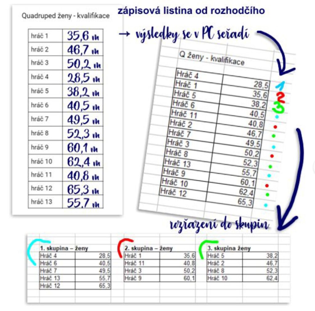 Poznámka: pokud se hráč nemůže z jakéhokoliv důvodu kvalifikace zůčastnit, může nastoupit do skupiny se vzdáleností 0 metrů